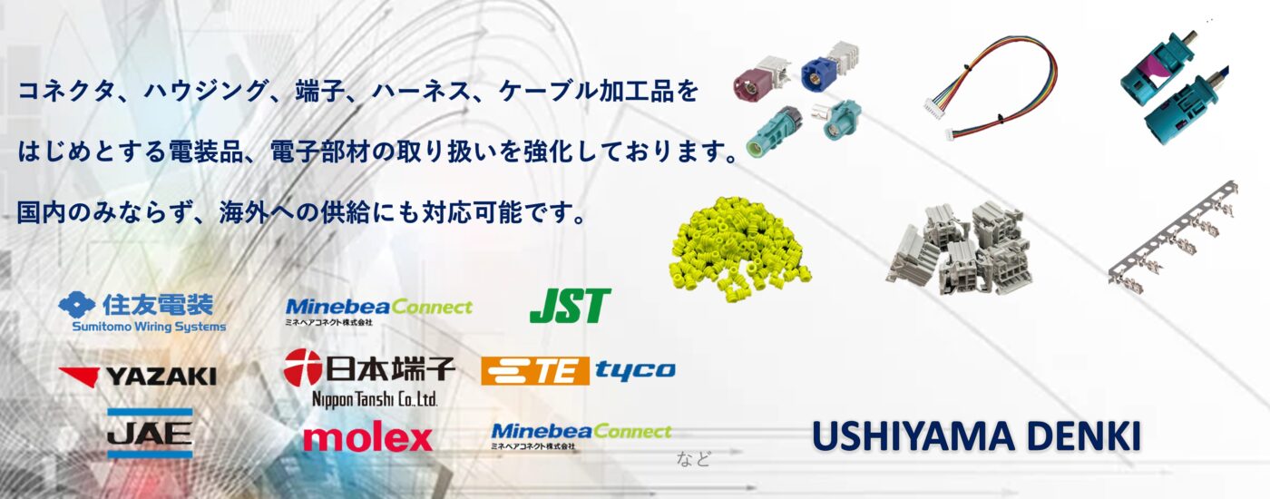 - 電装品に使われるコネクターやハウジング、端子、電線、ケーブルなど、多種多様な部材販売